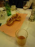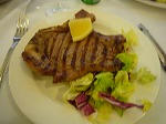 バジルのラビオリとステーキ、デザートは甘口ワインにひたして食べるビスコッティでした♪