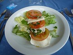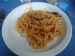 トマトとモッツァレラチーズの前菜にシーフードスパゲッティ。