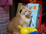 おもちゃ屋さんの店先にいた、看板ガッティーノ(笑)