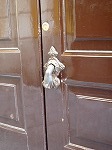 気付いた途端、一瞬びくっとするドアノッカー。